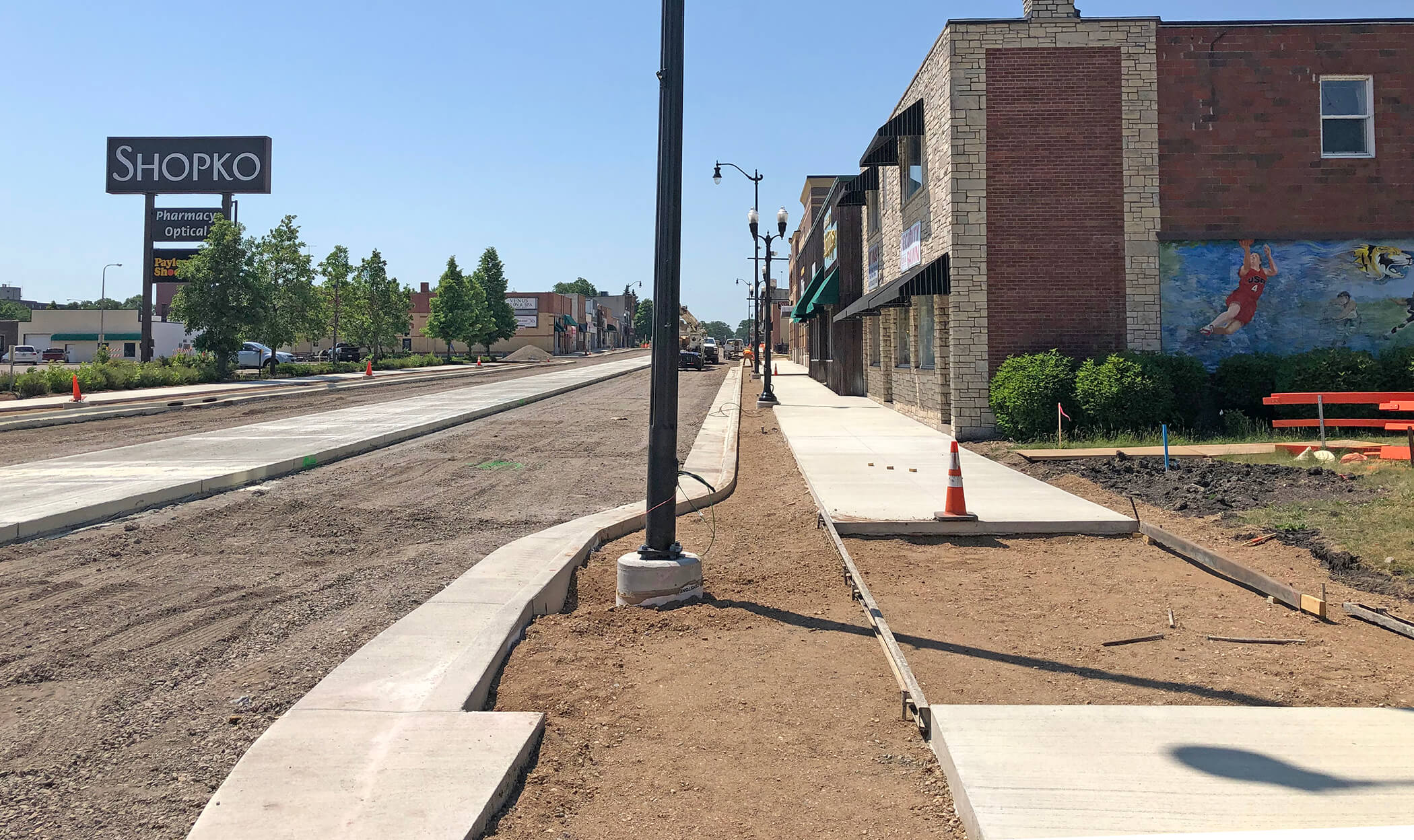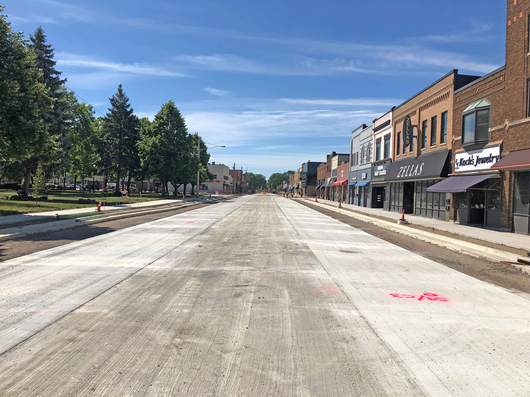 Concrete roadway, curb and gutter, and sidewalks completed north of 5th Avenue